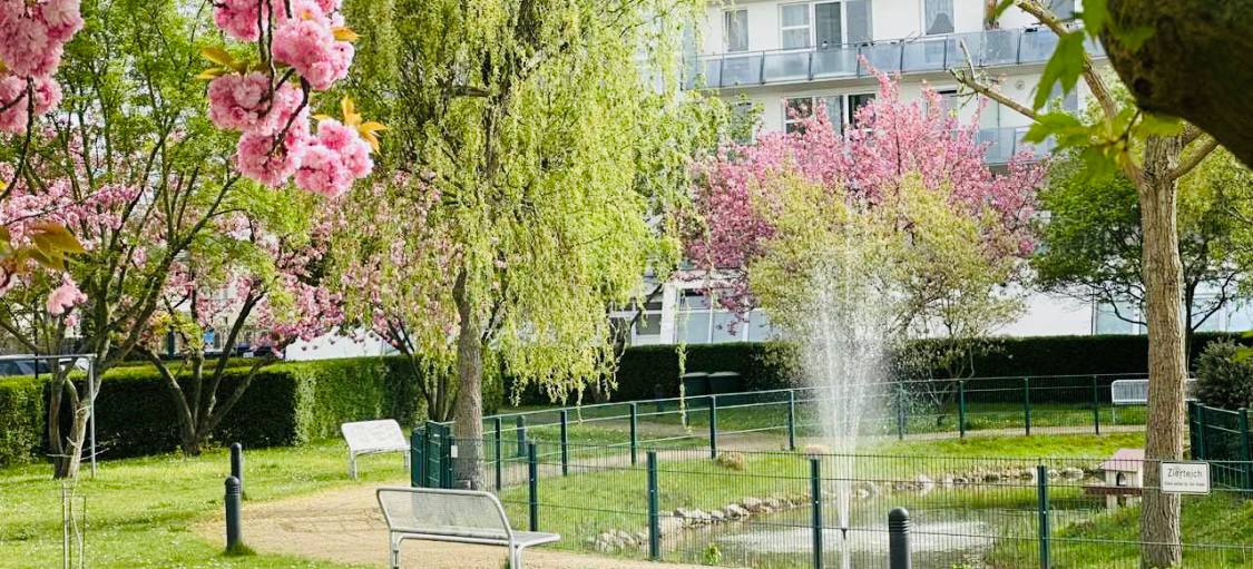 Zwischen gepflegten Grünflächen, Gartenanlagen und unserem Teich bietet der Wohnpark eine angenehme Umgebung zum Leben und Wohlfühlen.